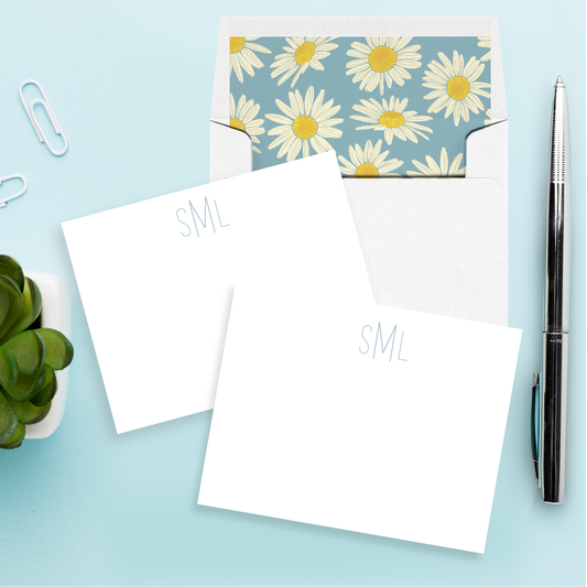 Blue Daisy Feminine Floral Personalized Stationery Set of 12