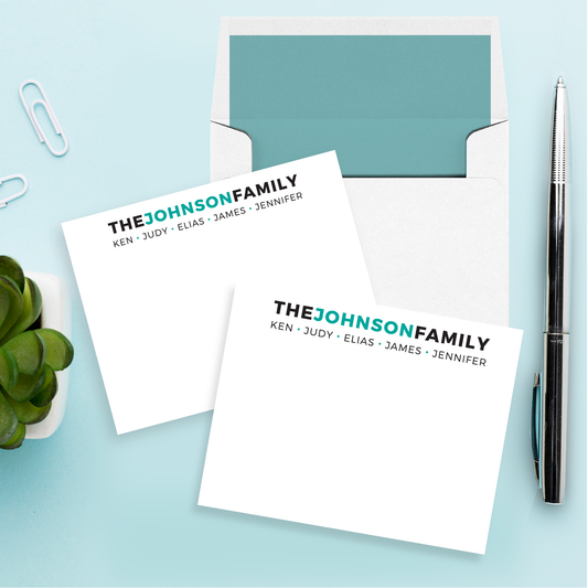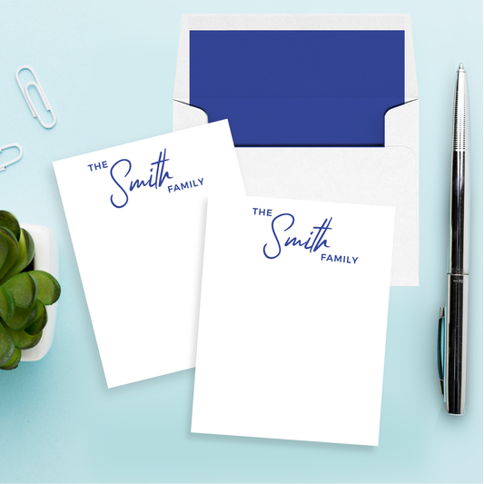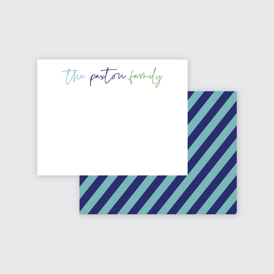 Family Blue Stripe Script Personalized Stationery Set of 12