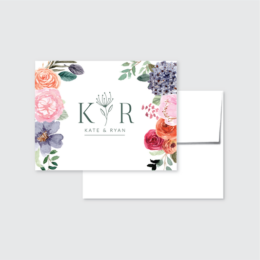 Colorful Floral Monogram Personalized Stationery Set of 12