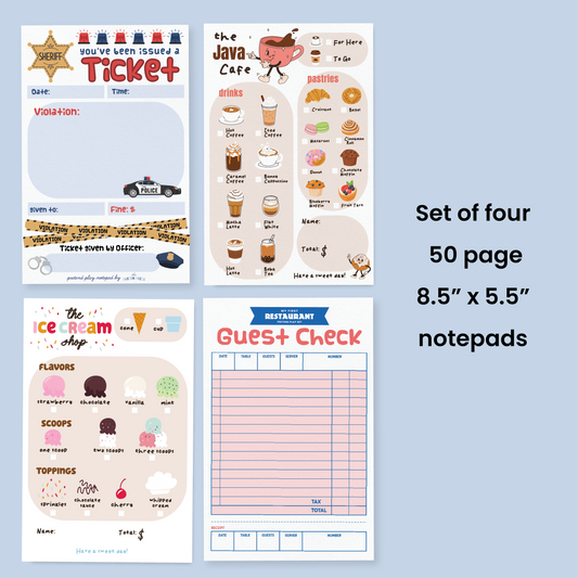 Set of 4 Dramatic Play Notepads