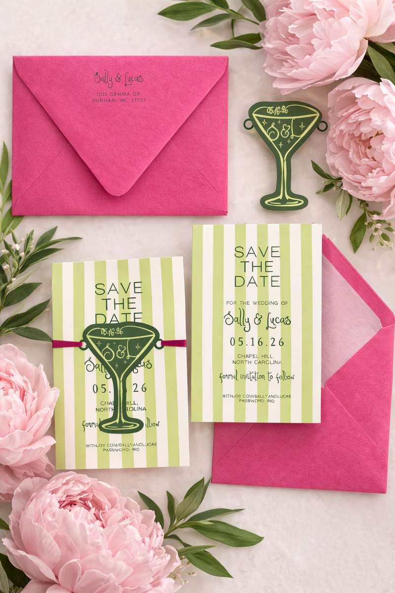 We’ve had the joy of designing wedding stationery for couples all over—from elegant invitation suites to playful die-cut place cards and signature drink signs. Every piece is thoughtfully crafted to reflect each couple’s unique style and celebration.