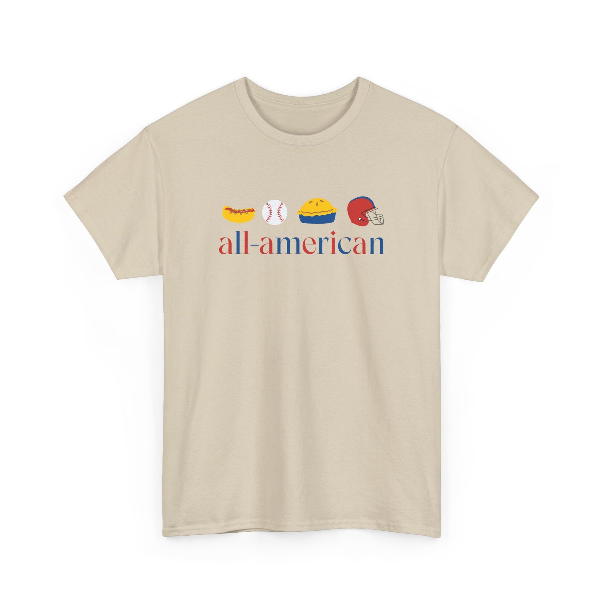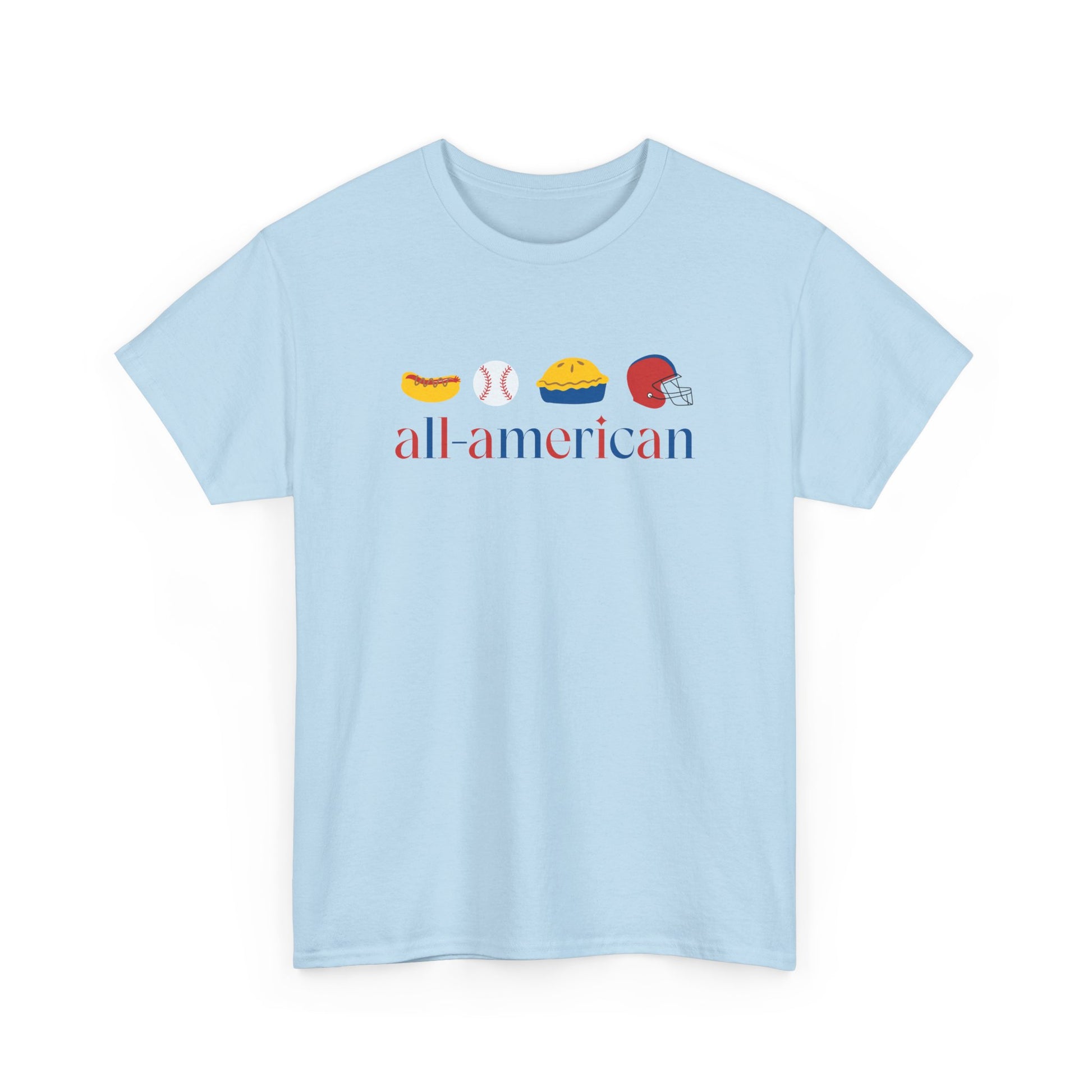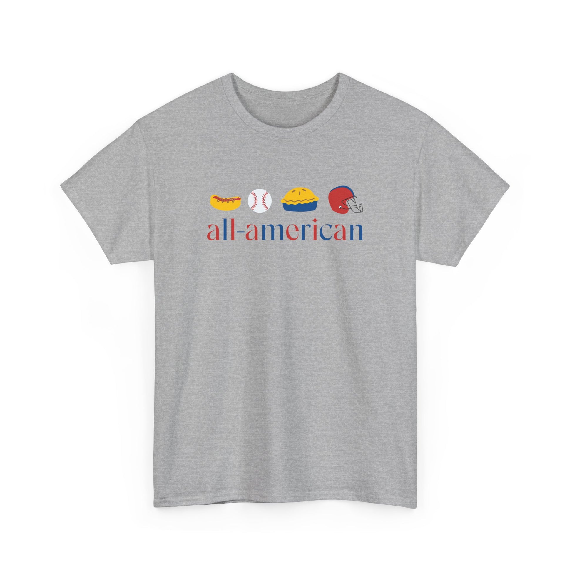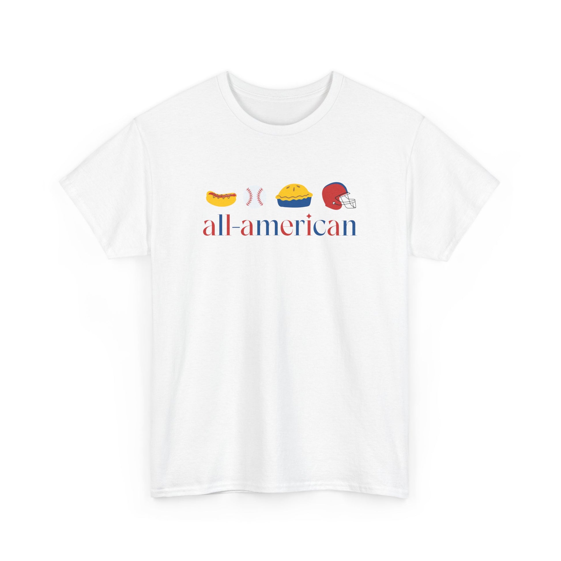 All-American Unisex Heavy Cotton Tee, 4th of July Shirt, Sports Fan Shirt, BBQ Outfit, Patriotic Gift, Summer Apparel