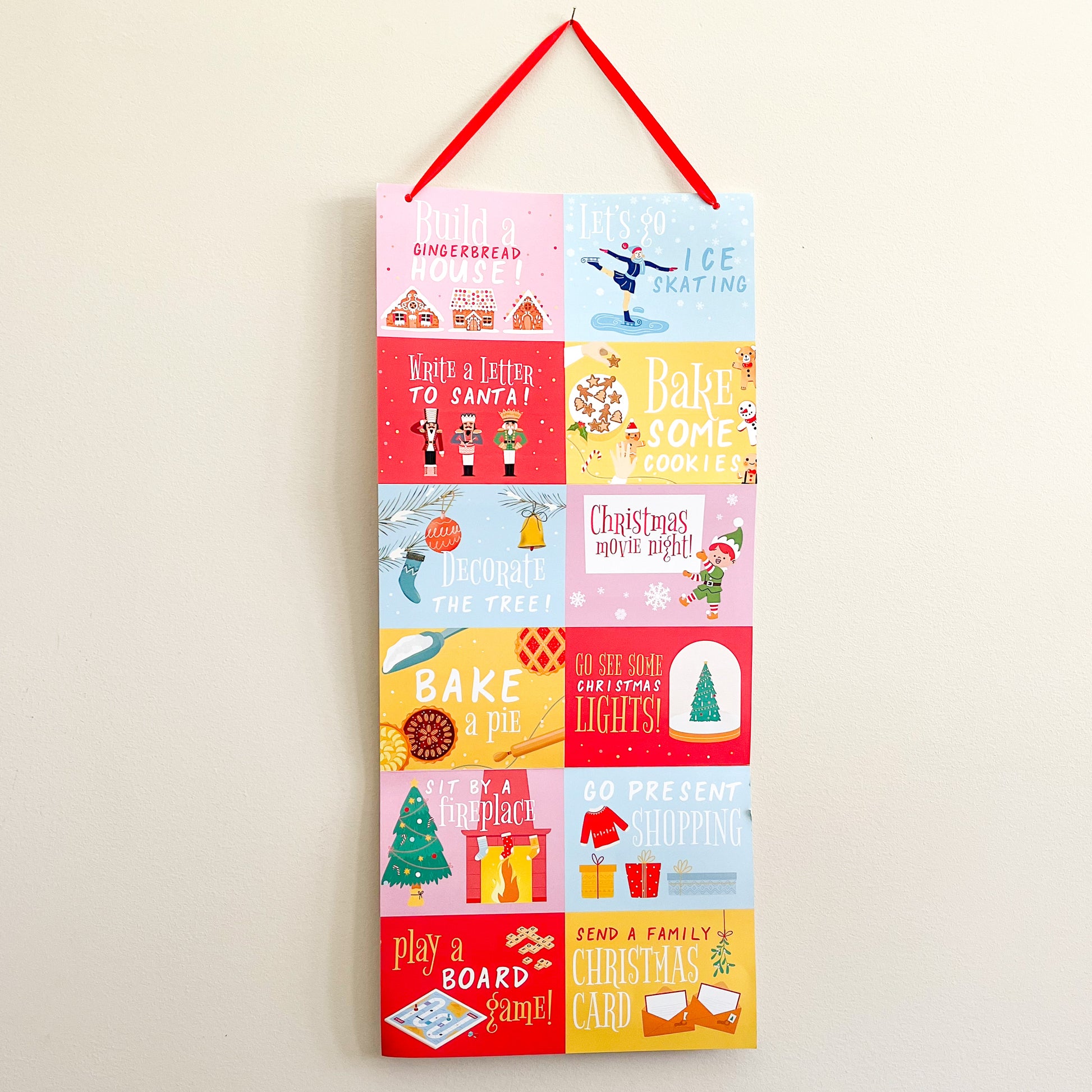 This adorable hanging Christmas activity chart is sure to keep the family entertained during the holiday season! It features 12 different fun kids activities for the season.