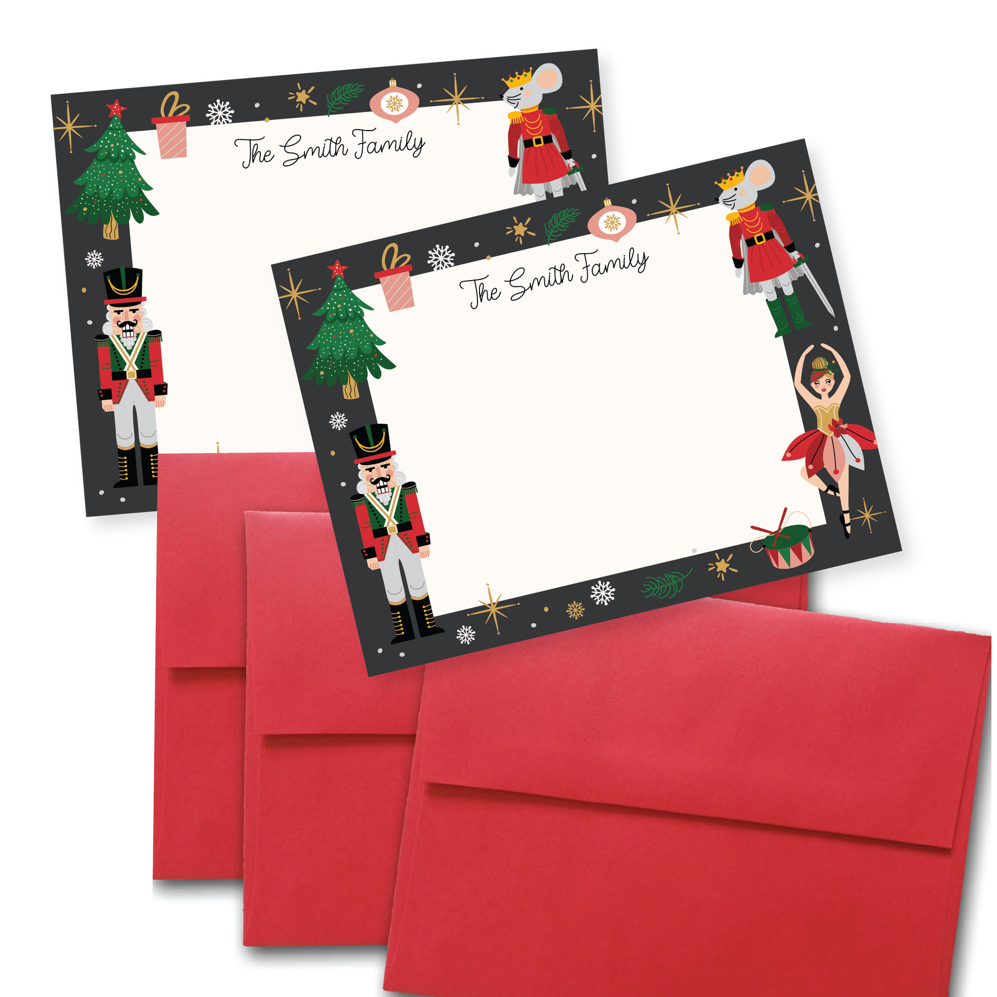 Celebrate the magic of the season with our Nutcracker Christmas Stationery. Featuring charming holiday-themed designs, these stationery notecards add a festive touch to your letters, notes, or holiday plans. Perfect for spreading cheer with every word, this set invites you to share joyful messages wrapped in classic Christmas spirit. Write, create, and brighten someone's day with fun, whimsical flair!
